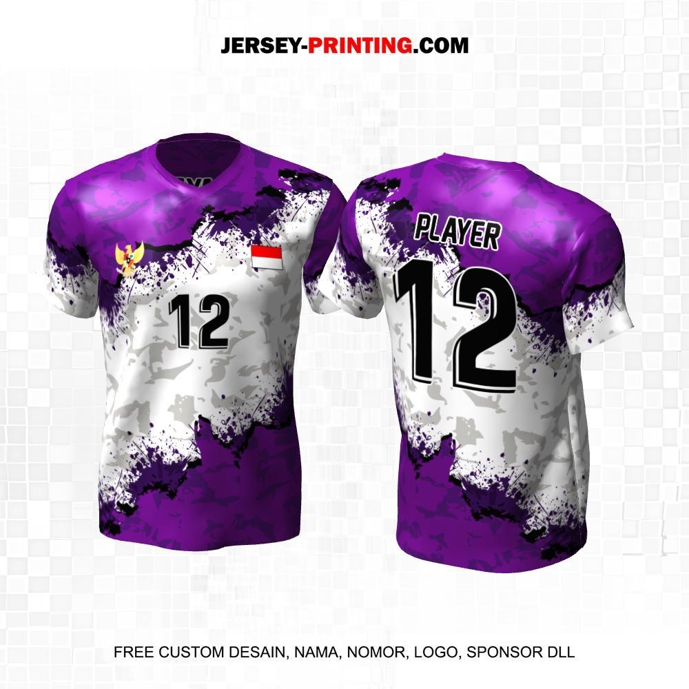 Jersey Volly Putih Ungu Motif Abstrak 425