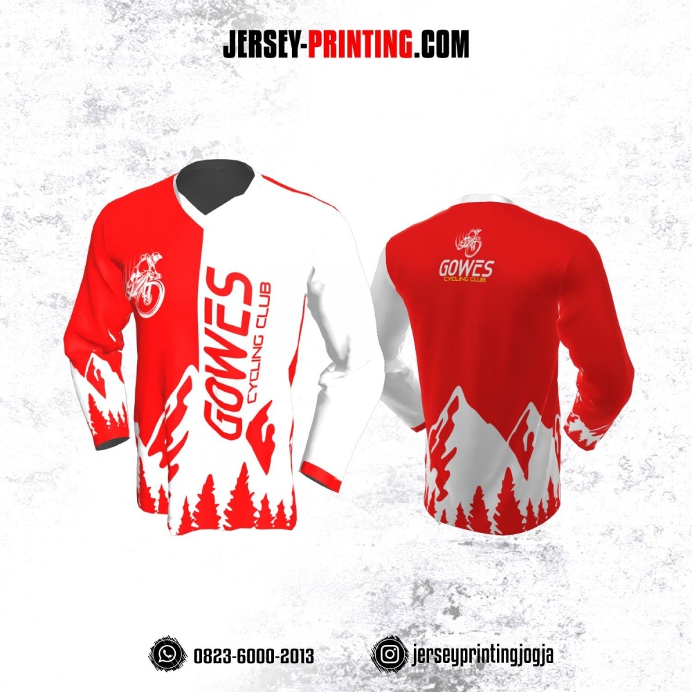 Jersey Gowes Sepeda Merah Putih Lengan Panjang