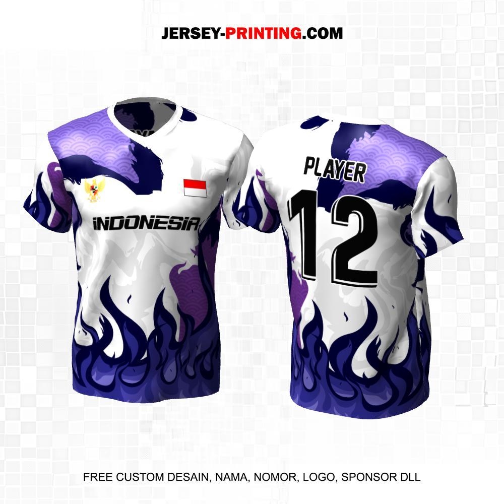 Jersey Futsal Putih Ungu Motif Abstrak Api 558