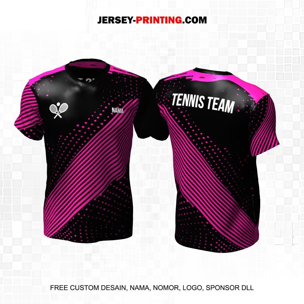 Jersey Tenis Hitam Pink Motif Garis Polkadot 33