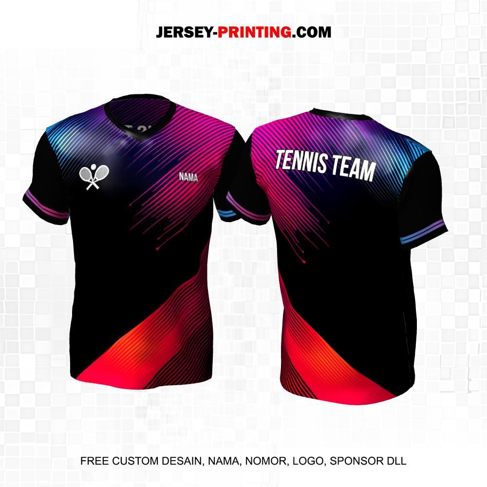 Jersey Tenis Hitam Pink Merah Motif Garis 34