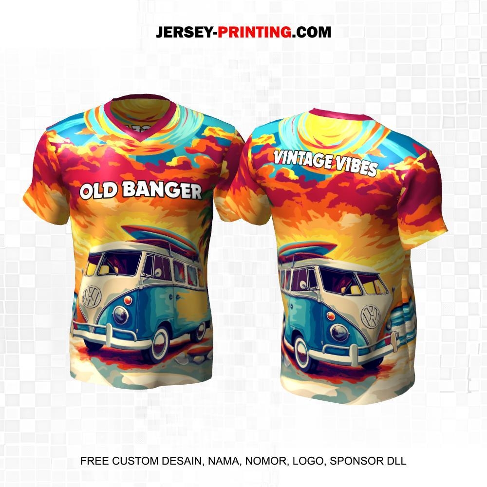 Jersey Mobil Vintage Tua Warna Warni Motif Abstrak 14