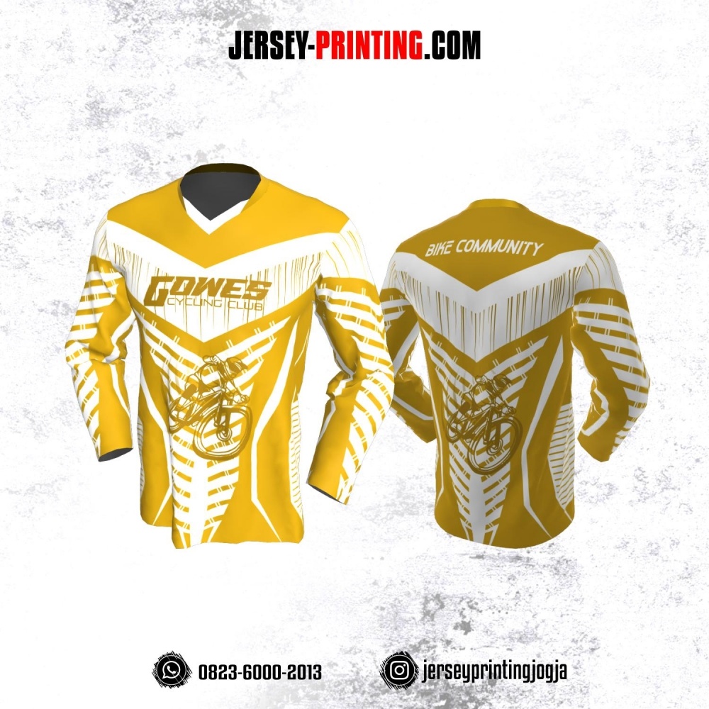 Jersey Gowes Sepeda Kuning Putih Garis Lengan Panjang