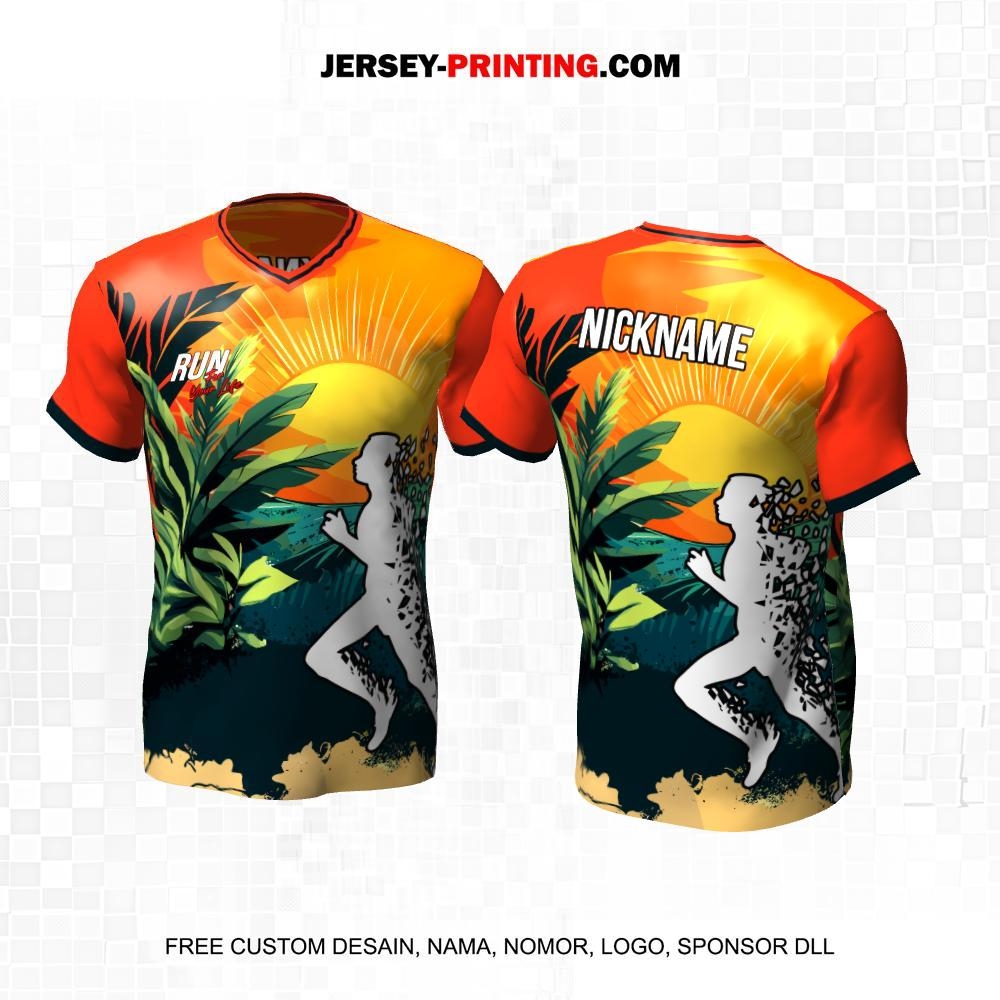 Jersey Lari Orange Hijau Motif Matahari Flora 430