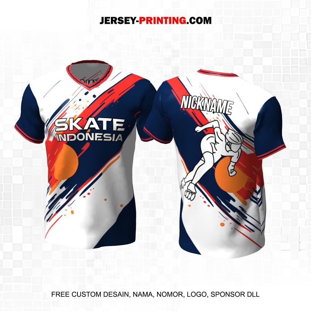 Jersey Sepatu Roda Putih Orange Navy Motif Abstrak 30