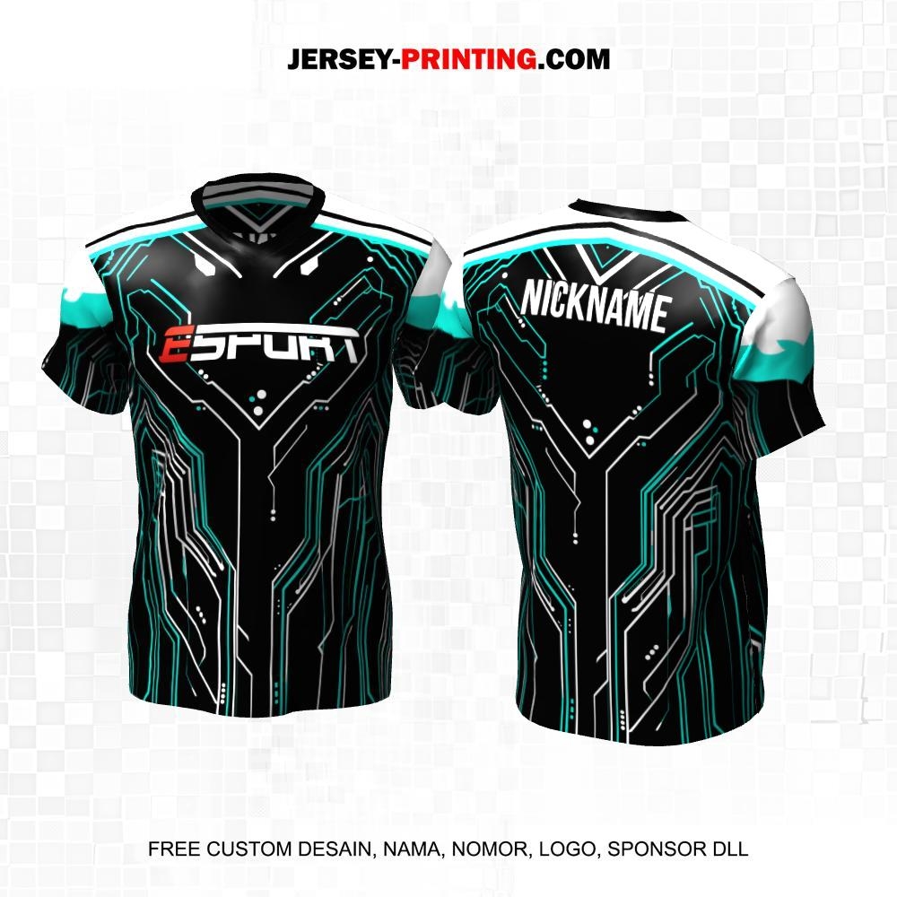 Jersey Gaming Esports Hitam Tosca Putih Motif Teknologi Circuit Elektronik 222