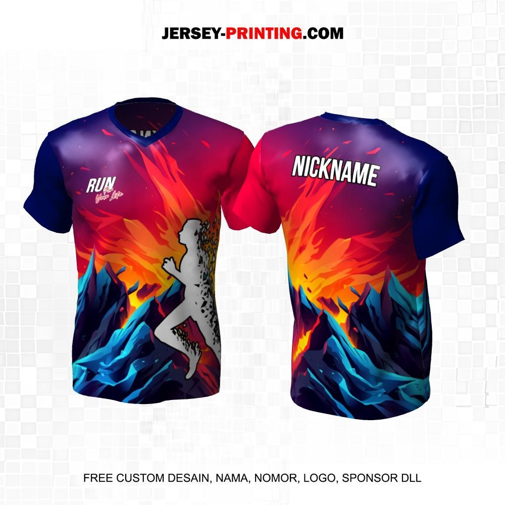 Jersey Lari Biru Pink Orange Motif Abstrak Lava Gunung 435