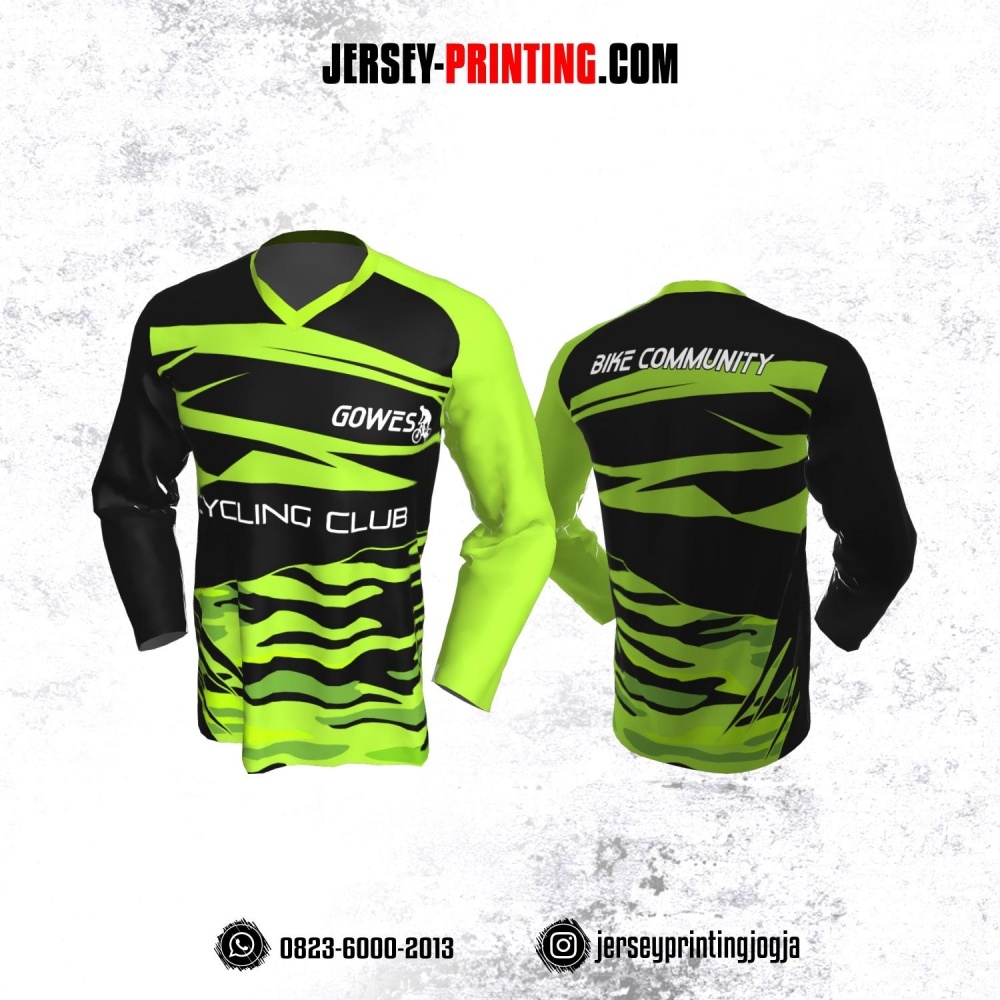 Jersey Gowes Sepeda Hitam hijau Lengan Panjang