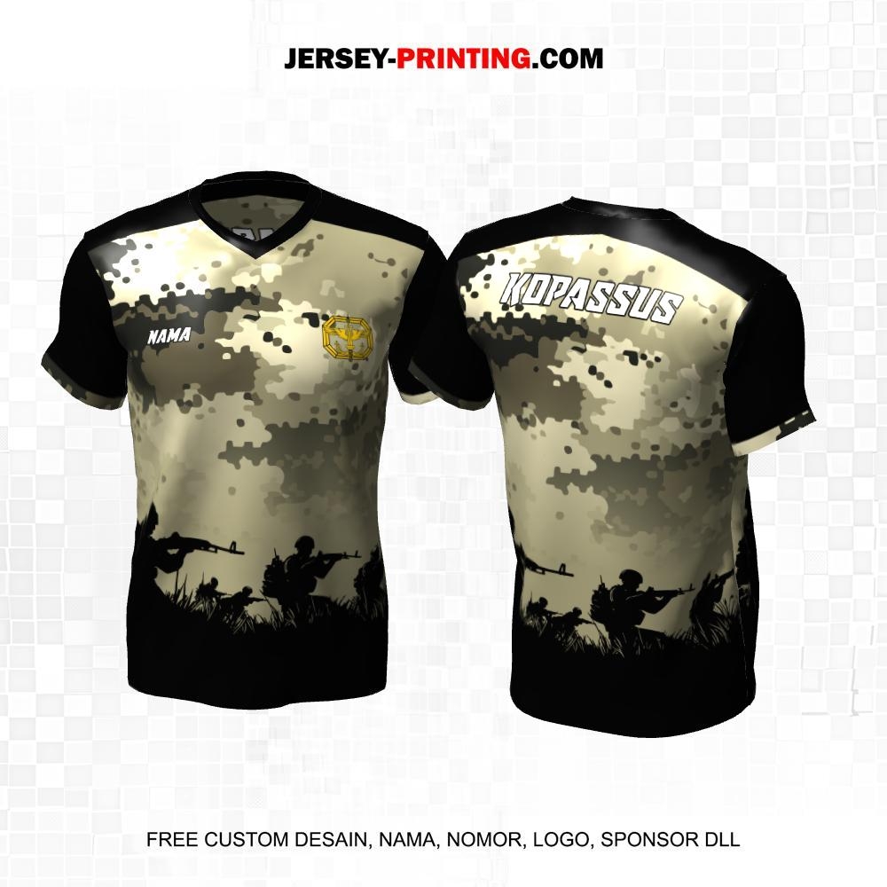 Jersey Kopassus Tentara TNI AD Angkatan Darat Krem Hitam Motif Abstrak 60