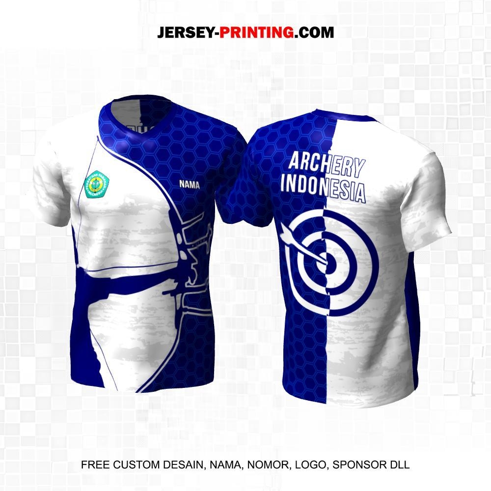 Jersey Panahan Biru Putih Motif Abstrak Honeycomb 135