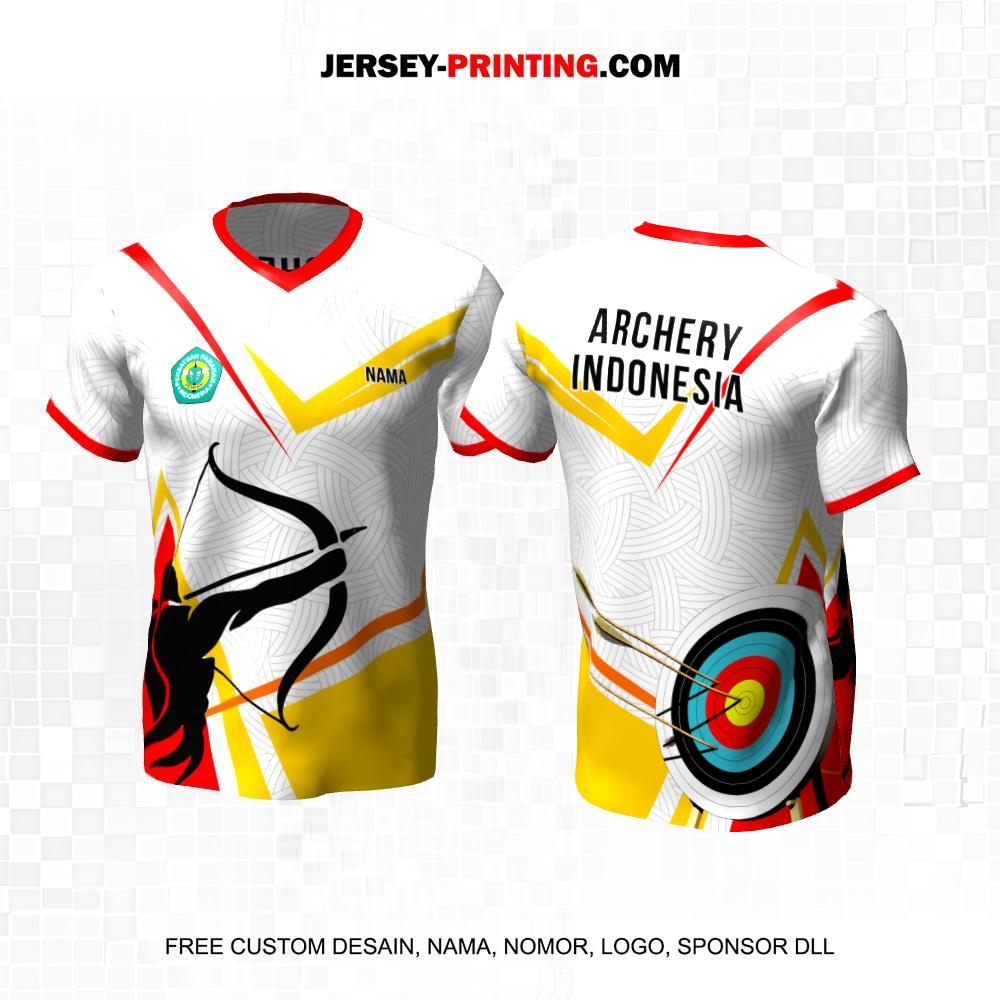Jersey Panahan Putih Merah Kuning Motif Abstrak Geometris 143