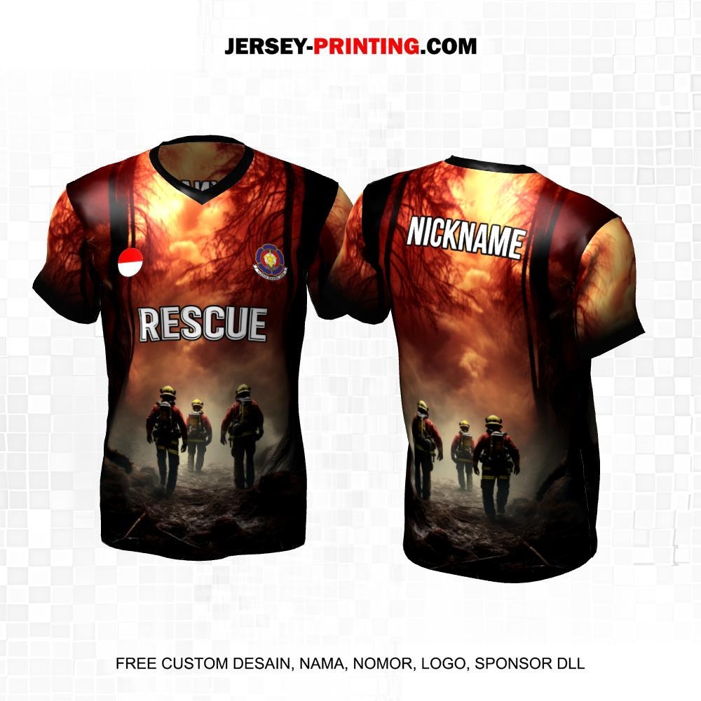 Jersey Damkar Pemadam Kebakaran Hitam Orange Motif Alam 71
