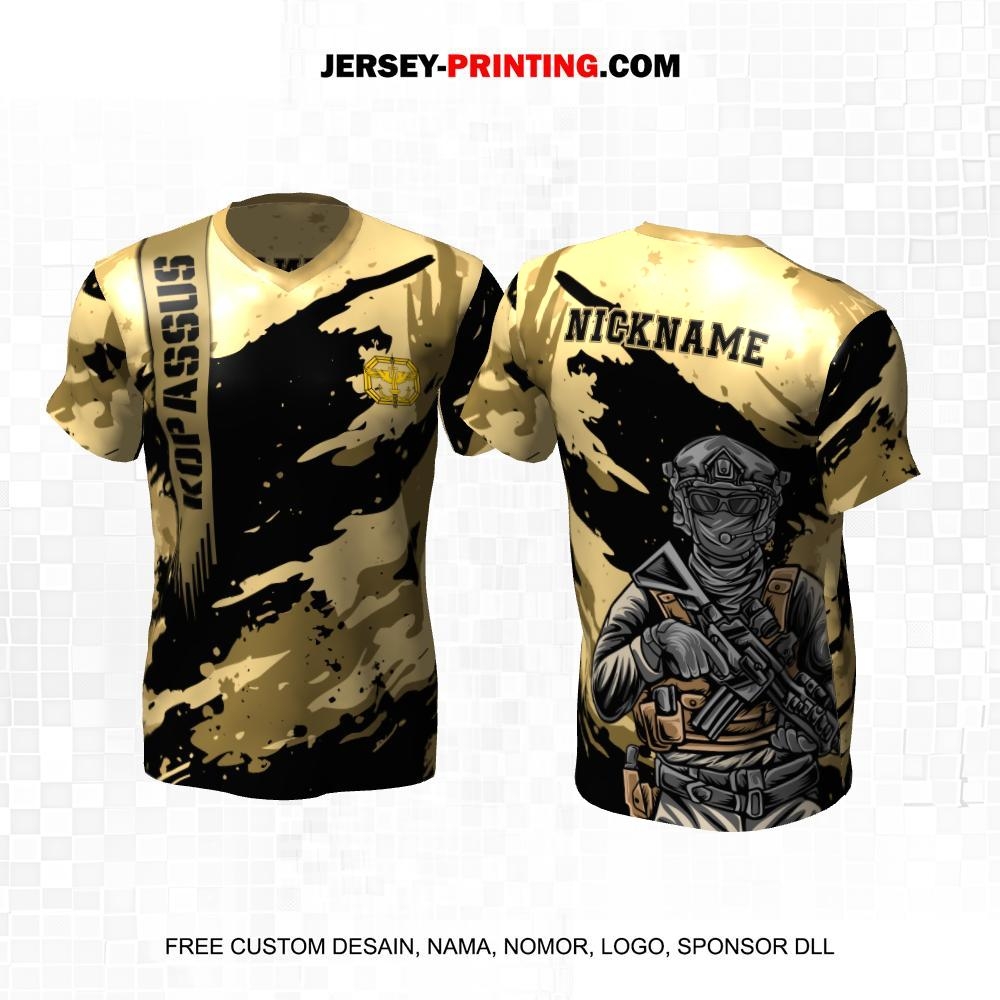 Jersey Kopassus Tentara TNI AD Angkatan Darat Hitam Krem Motif Abstrak 72