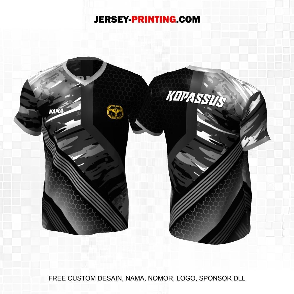 Jersey Kopassus Tentara TNI AD Angkatan Darat Hitam Abu Motif Abstrak Garis Honeycomb 75