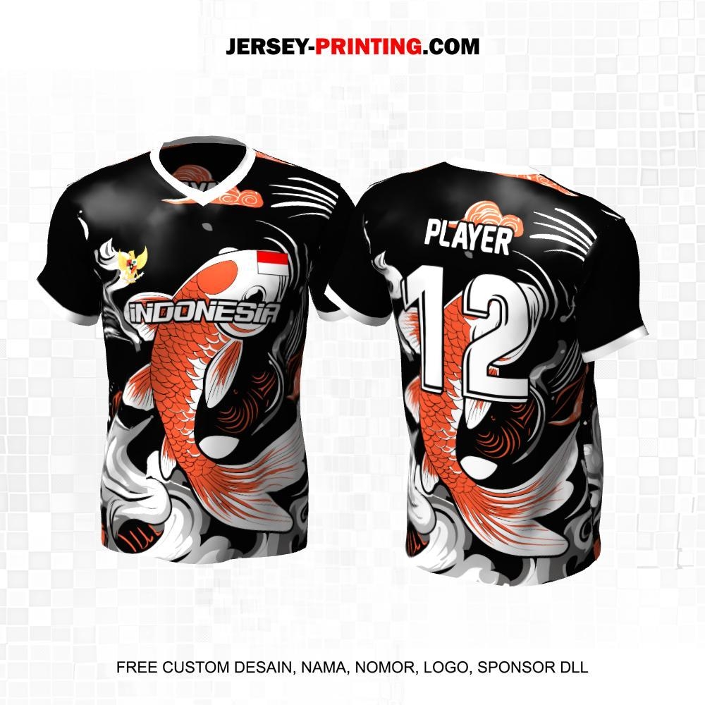 Jersey Futsal Hitam Putih Orange Motif Ikan 578