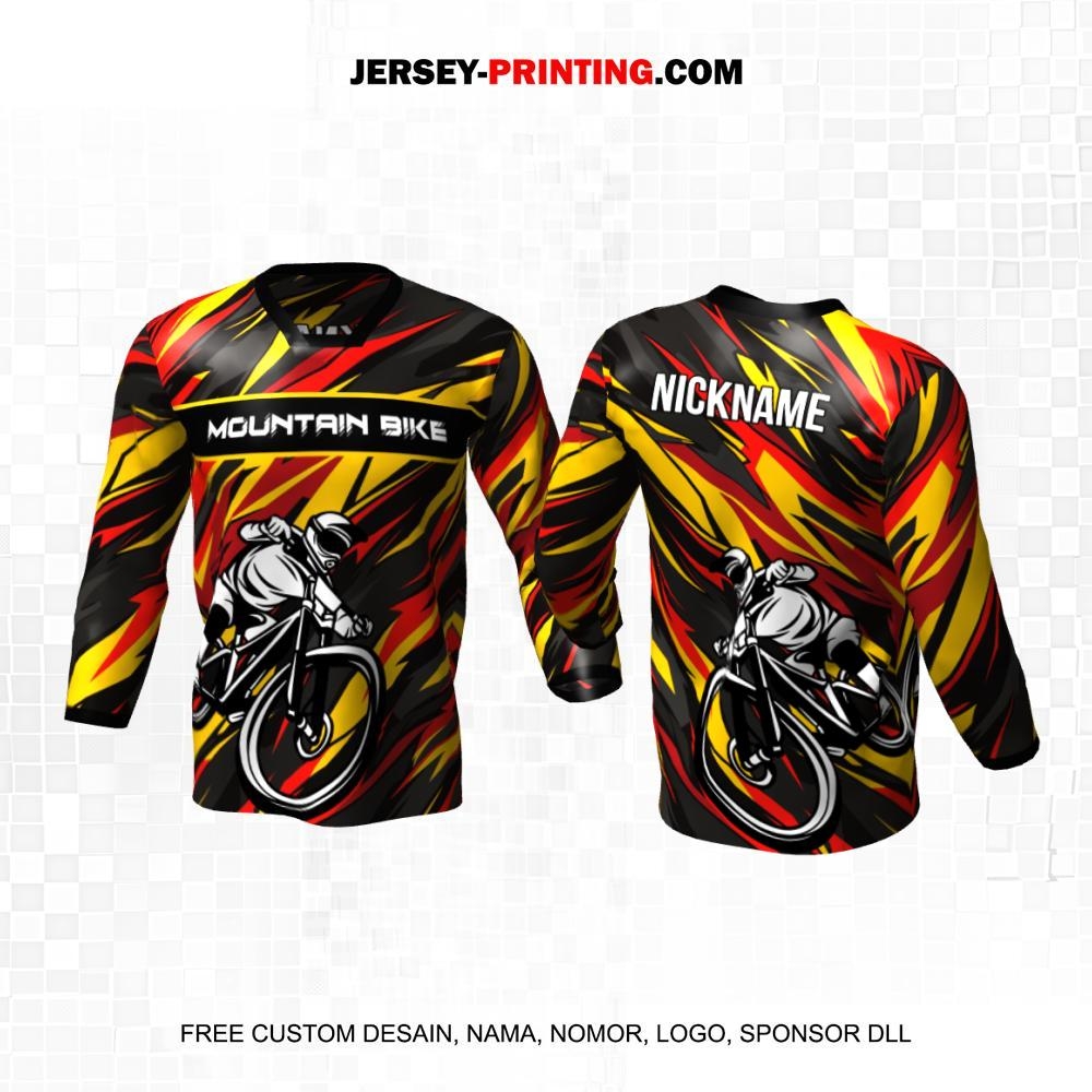 Jersey Gowes Sepeda Downhill Hitam Merah Kuning Motif Abstrak 128