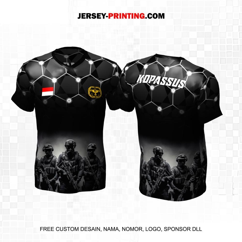 Jersey Kopassus Tentara TNI AD Angkatan Darat Hitam Abu Motif Honeycomb 83