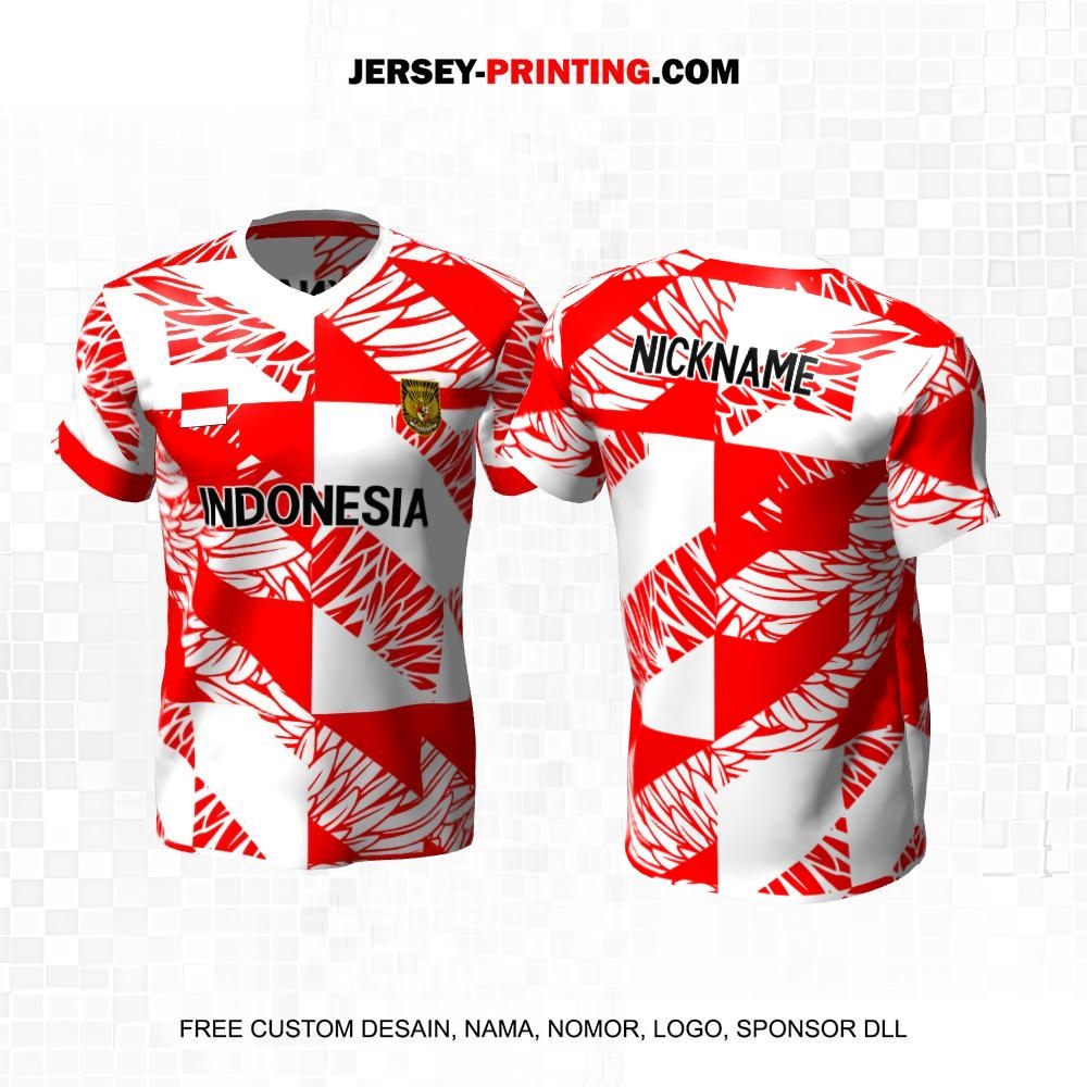 Jersey Futsal Timnas Putih Merah Motif Abstrak 583