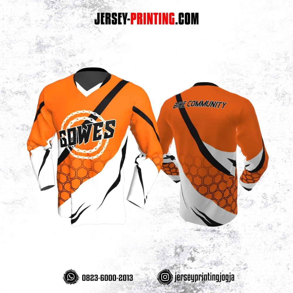Jersey Gowes Sepeda Orange Putih Hitam Hexagon Lengan Panjang
