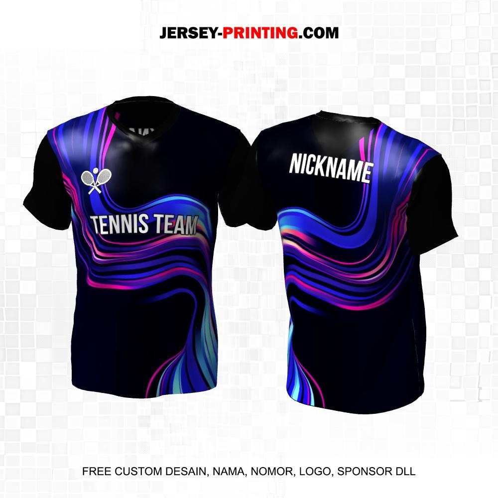 Jersey Tenis Hitam Ungu Biru Motif Liquid 58