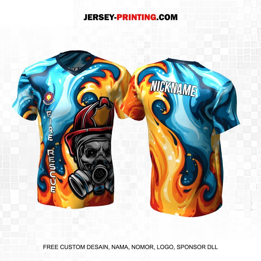 Jersey Damkar Pemadam Kebakaran Biru Orange Motif Air & Api 84