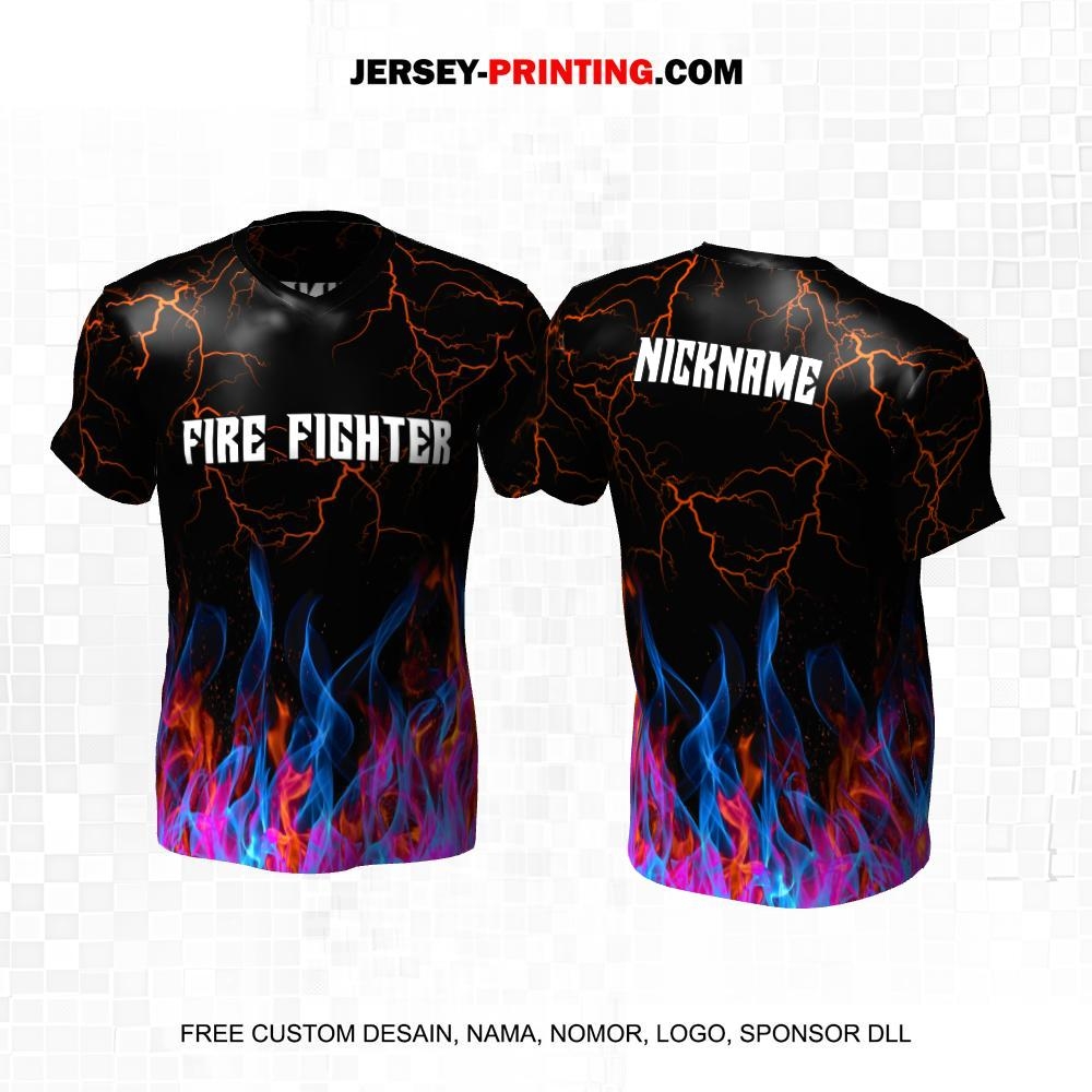 Jersey Damkar Pemadam Kebakaran Hitam Orange Pink Biru Motif Petir Api 86