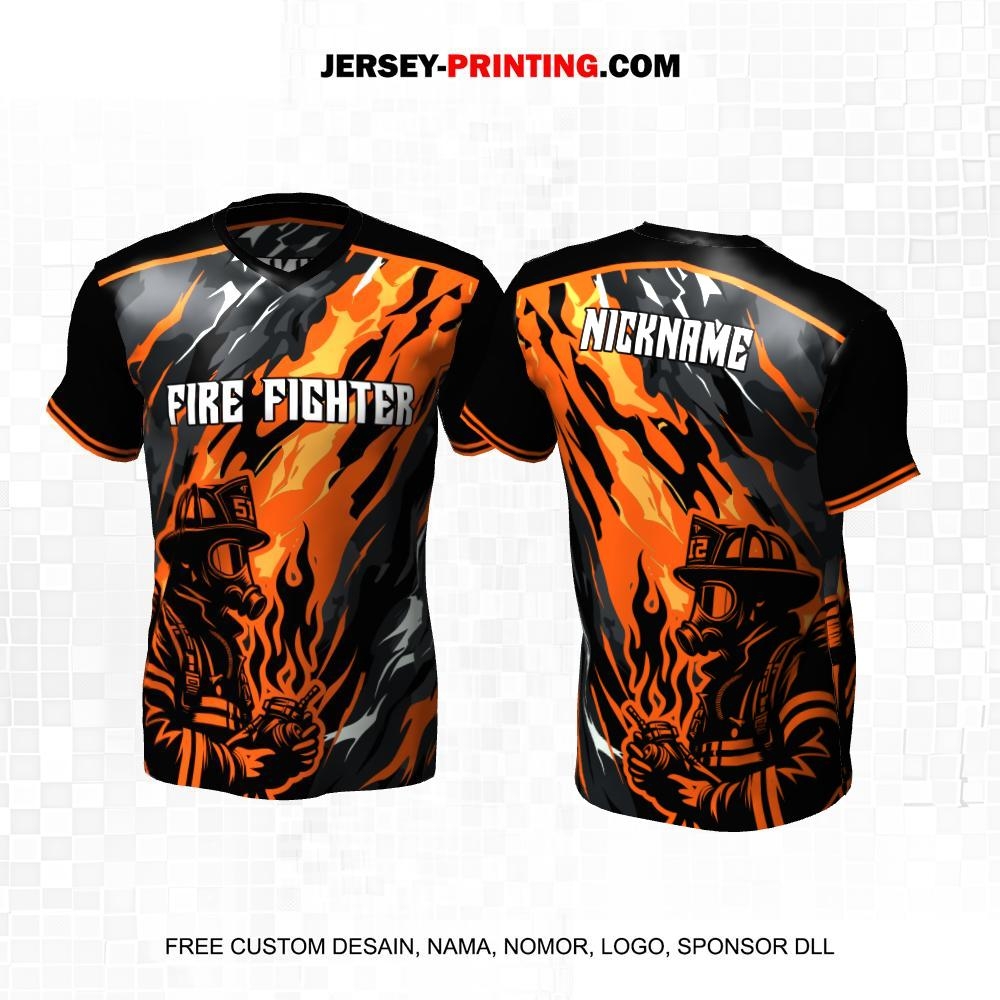 Jersey Damkar Pemadam Kebakaran Hitam Abu Orange Motif Abstrak 93