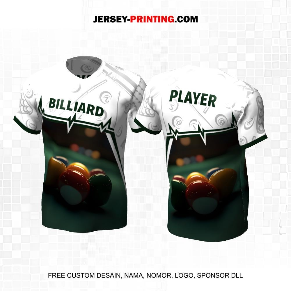 Jersey Billiard Putih Hijau Motif Bola Billiard 09