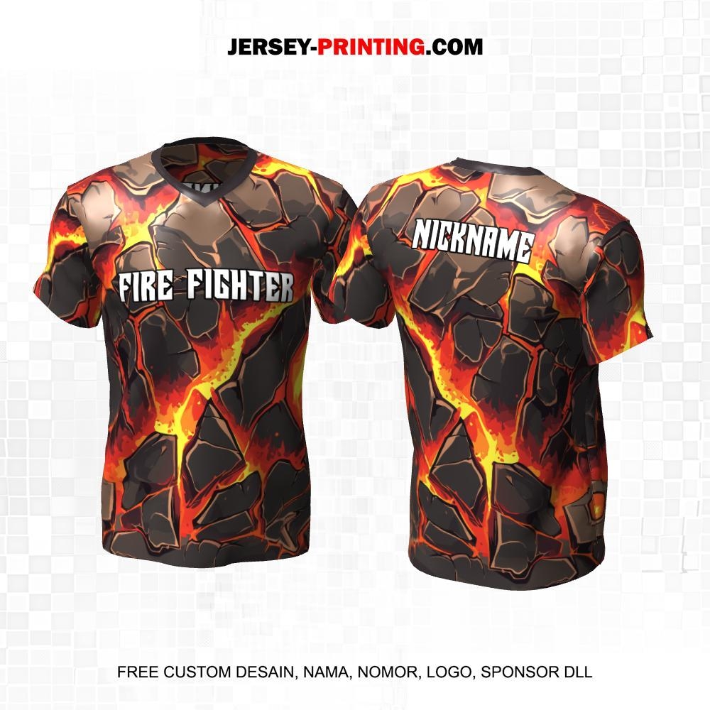 Jersey Damkar Pemadam Kebakaran Coklat Orange Motif Retakan Api 96