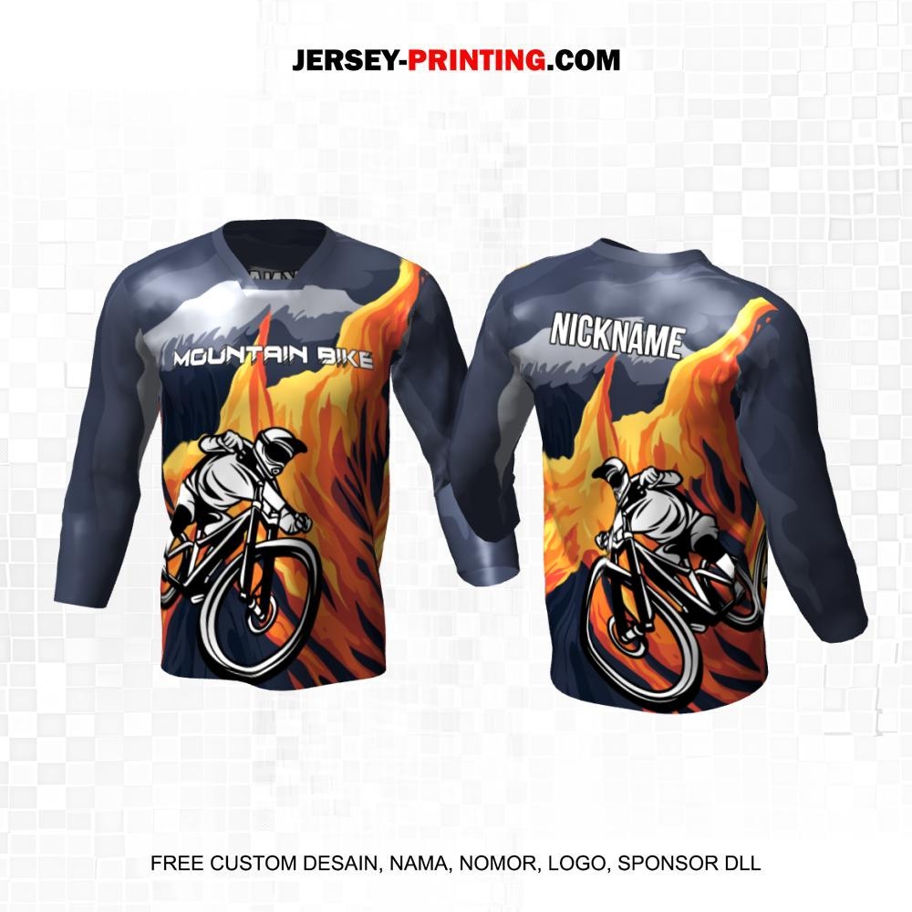 Jersey Gowes Sepeda Downhill Abu Orange Motif Abstrak 129