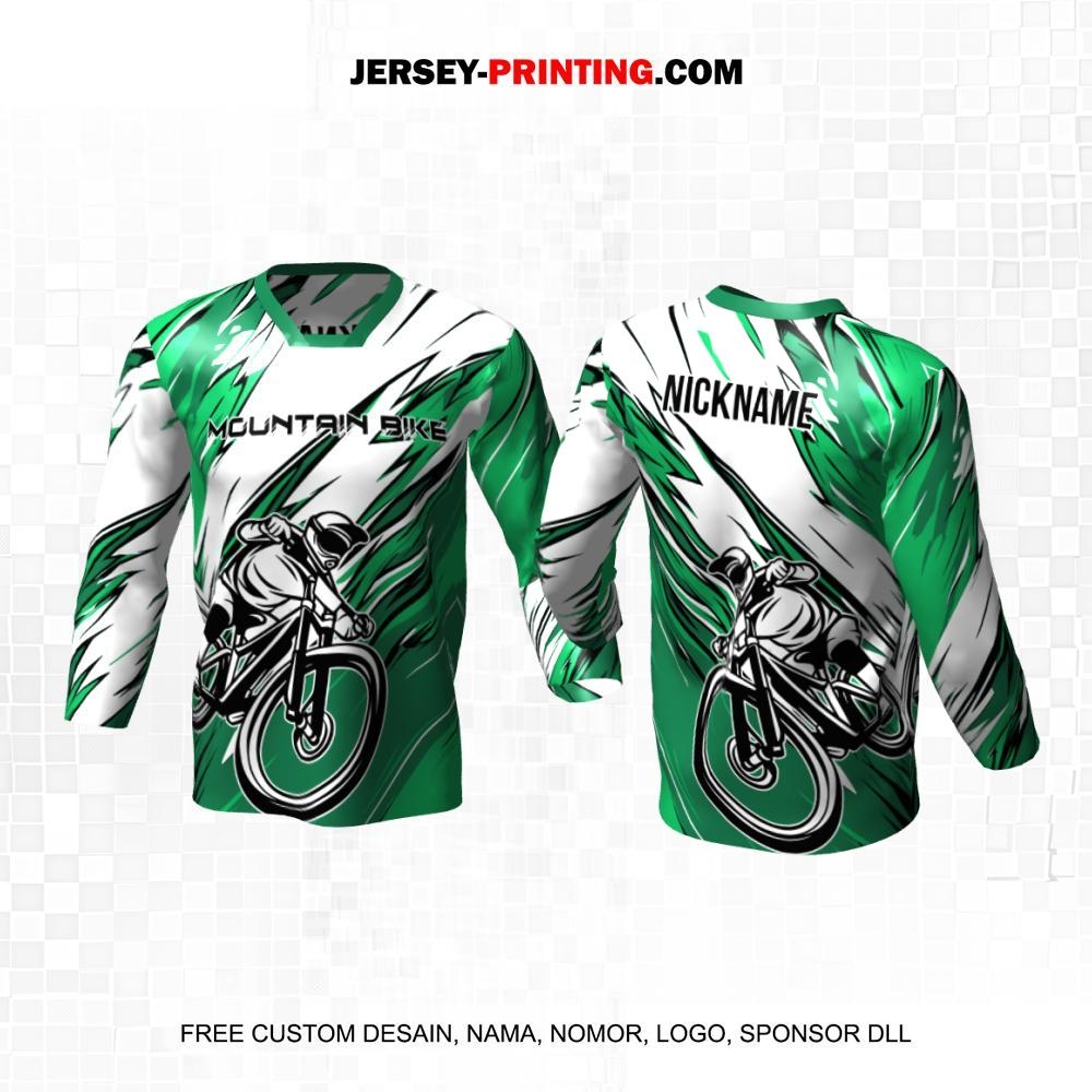 Jersey Gowes Sepeda Downhill Hijau Putih Motif Abstrak 134