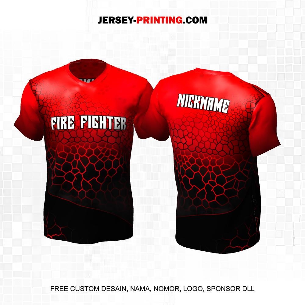 Jersey Damkar Pemadam Kebakaran Hitam Merah Motif Abstrak 100