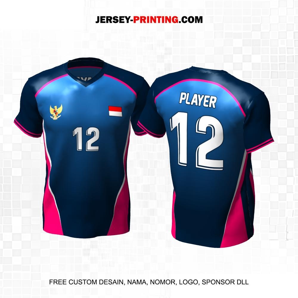 Jersey Volly Navy Pink Putih Motif Garis 436