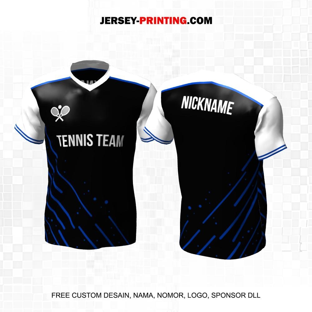 Jersey Tenis Hitam Putih Biru Motif Abstrak 69