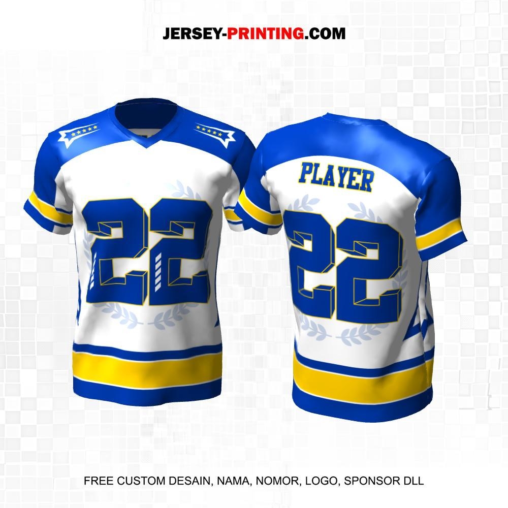 Jersey Futsal Retro Vintage Putih Biru Kuning Motif Garis 604