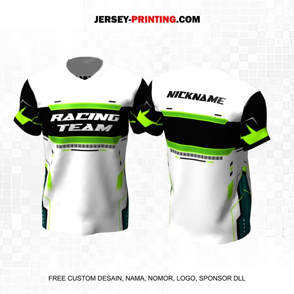 Jersey Racing Putih Hitam Hijau Motif Abstrak 184