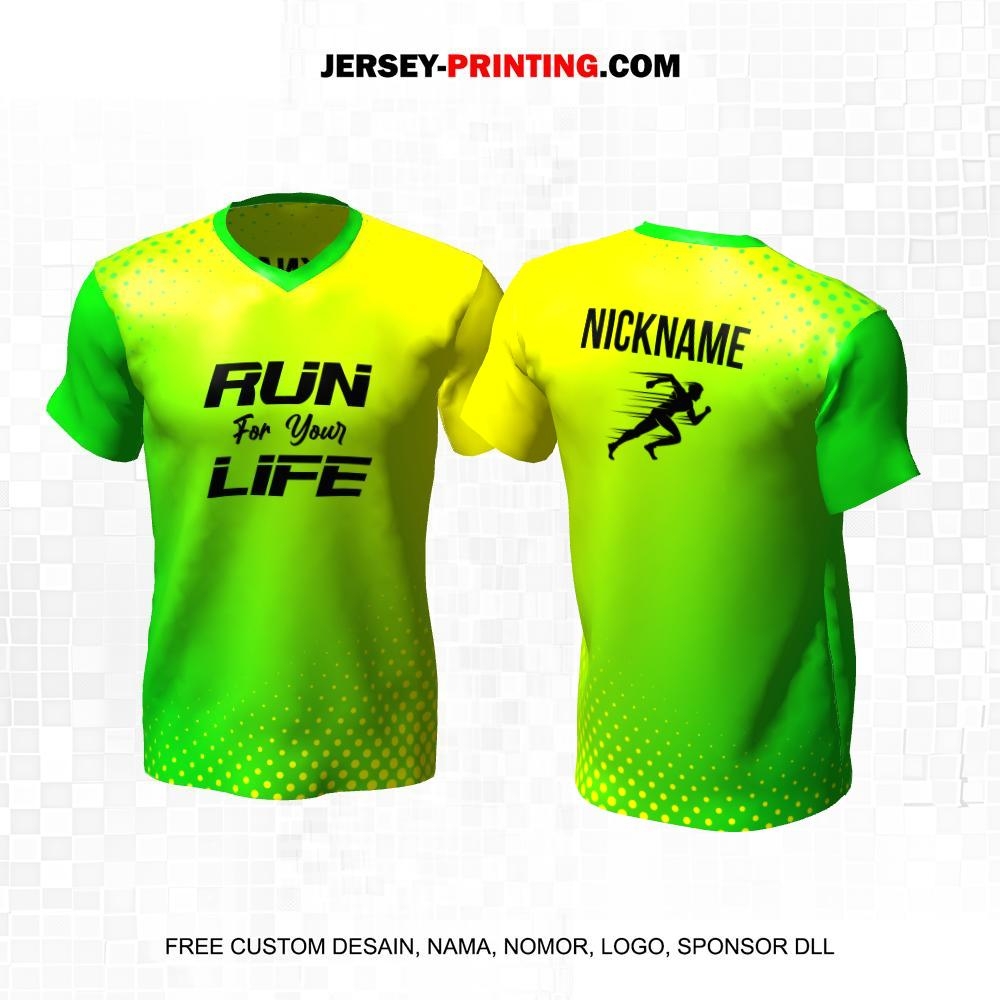 Jersey Lari Gradasi Kuning Hijau Motif Polkadot 462