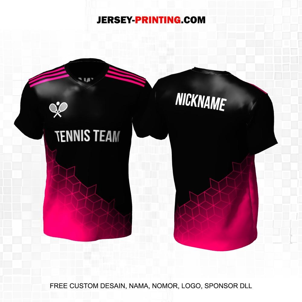 Jersey Tenis Hitam Pink Motif Geometris 80