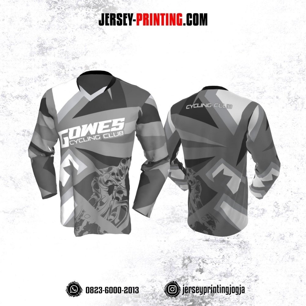 Jersey Gowes Sepeda Abu Putih Lengan Panjang