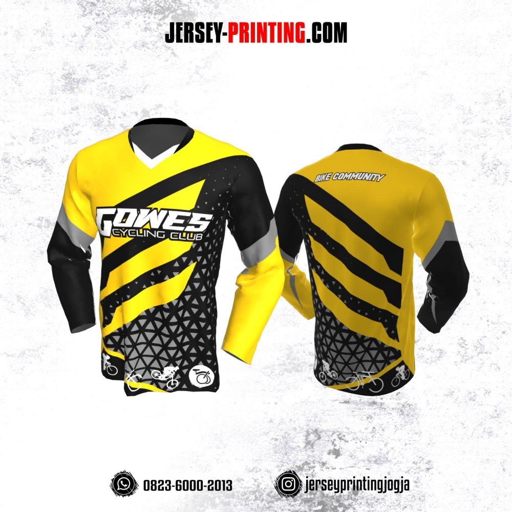 Jersey Gowes Sepeda Hitam Kuning Abu Segitiga Lengan Panjang