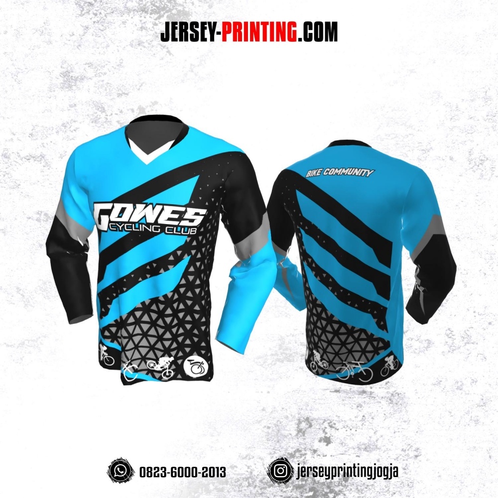 Jersey Gowes Sepeda Hitam Biru Abu Segitiga Lengan Panjang