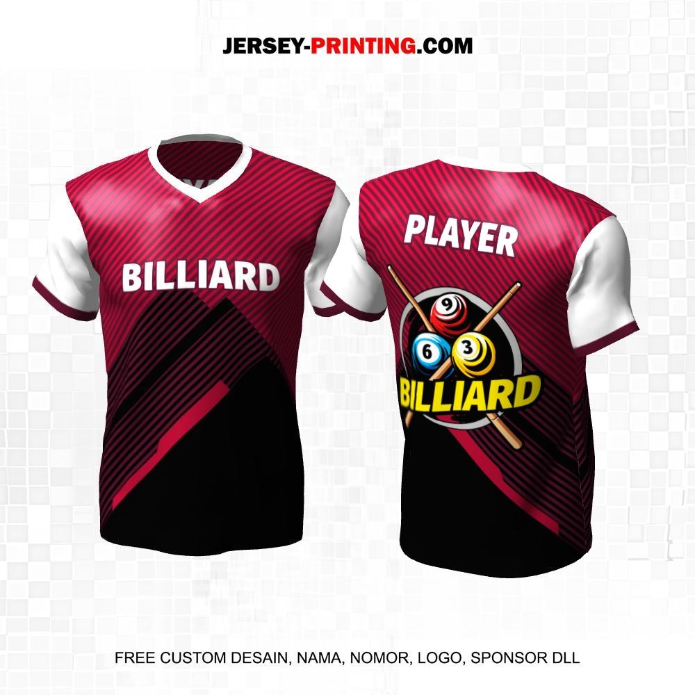 Jersey Billiard Hitam Merah Putih Motif Abstrak Garis 14