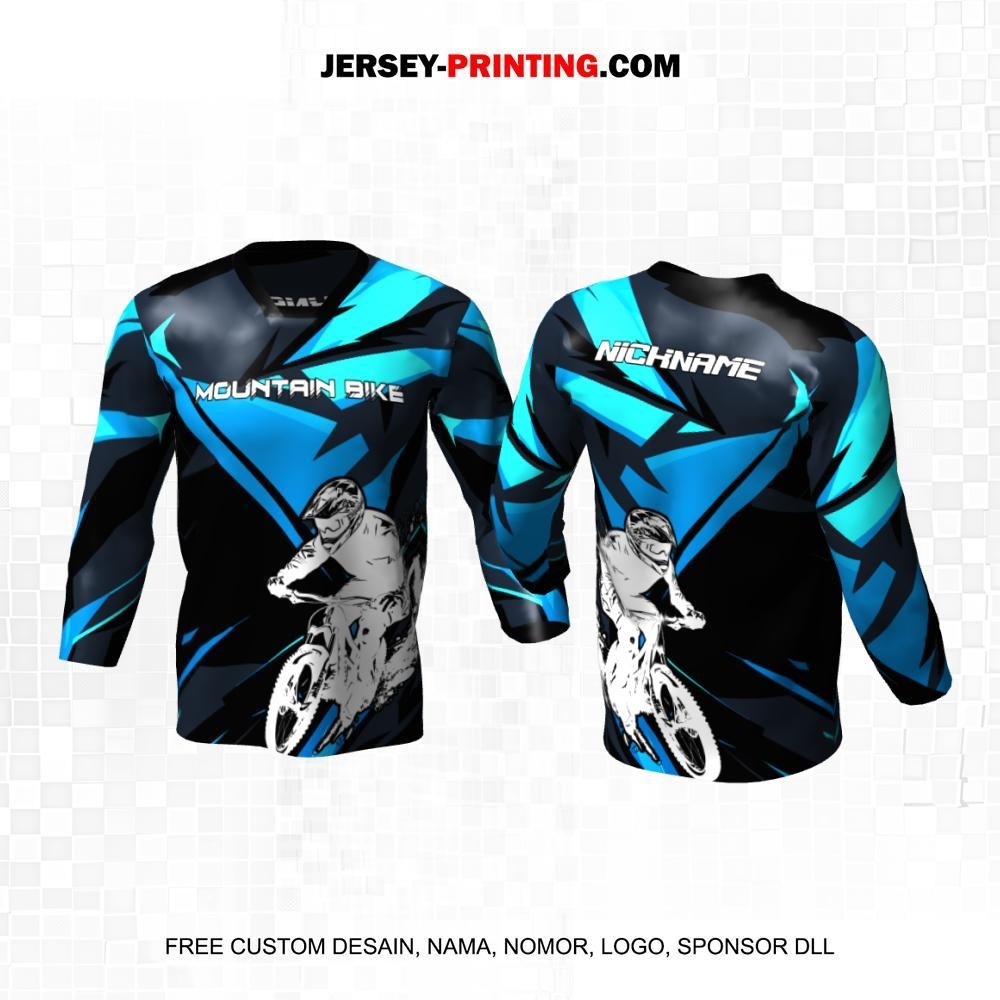 Jersey Gowes Sepeda Downhill Hitam Biru Navy Motif Abstrak 139