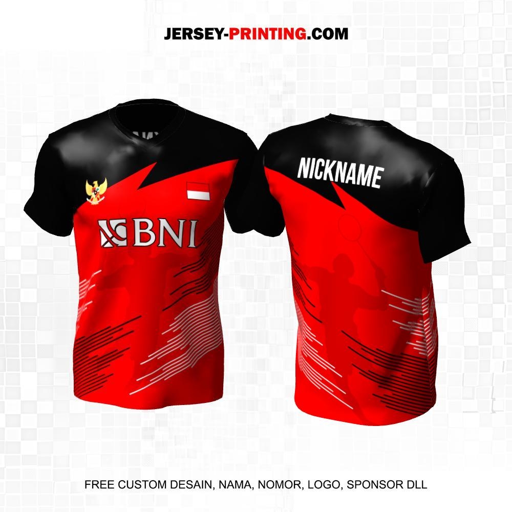 Jersey Badminton Merah Hitam Motif Abstrak 189