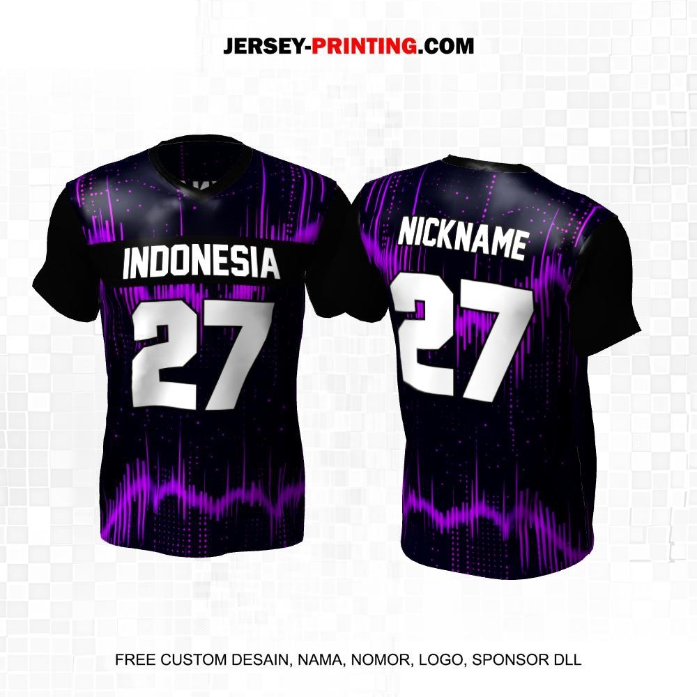 Jersey Futsal Retro Vintage Hitam Ungu Motif Abstrak 611