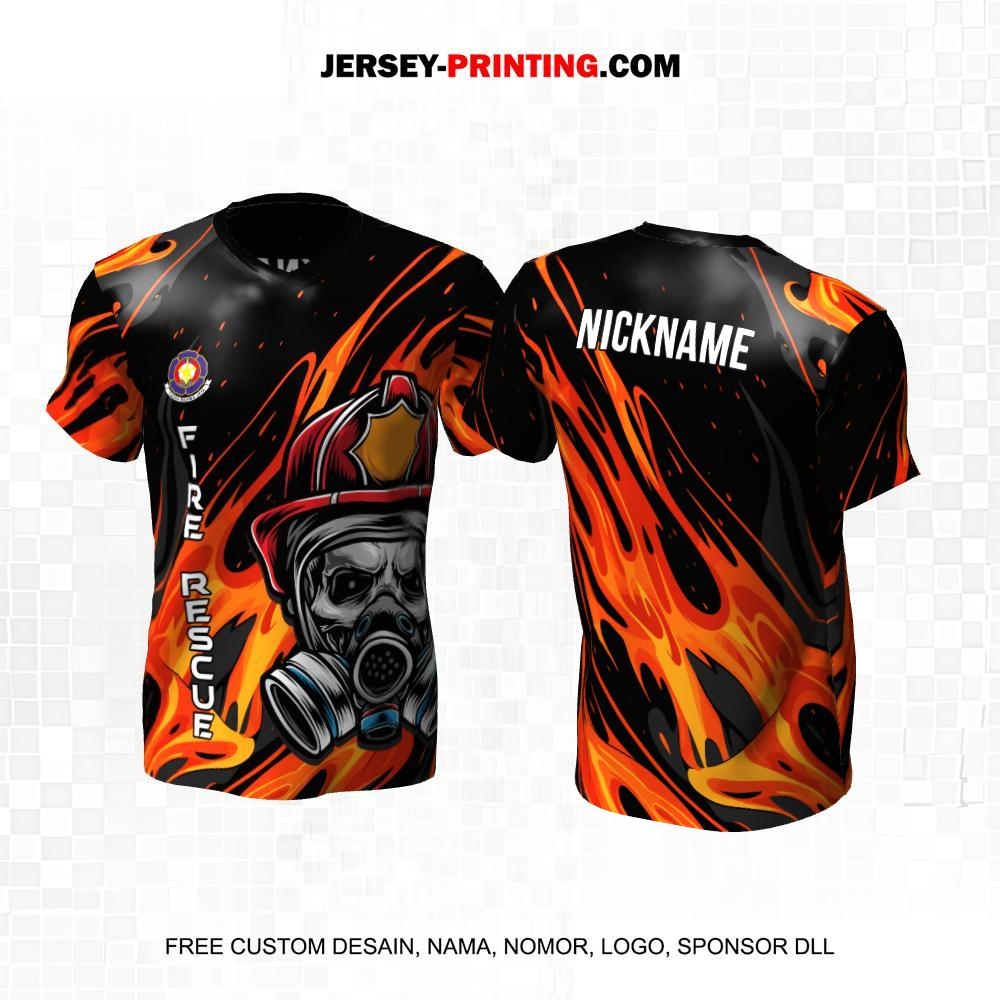 Jersey Damkar Pemadam Kebakaran Hitam Orange Motif Abstrak 109