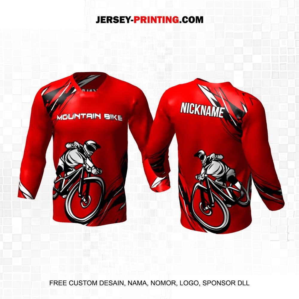 Jersey Gowes Sepeda Downhill Merah Hitam Putih Motif Abstrak 141
