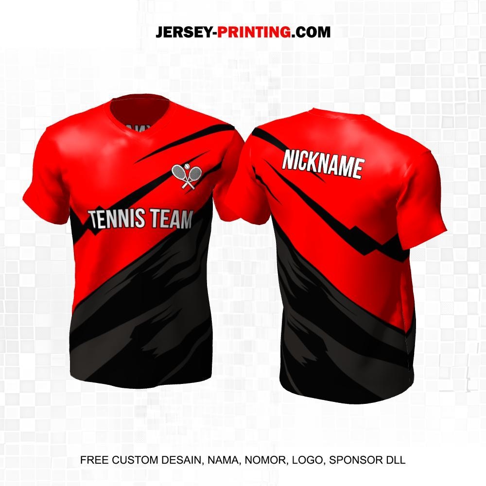Jersey Tenis Merah Hitam Abu Motif Abstrak 117