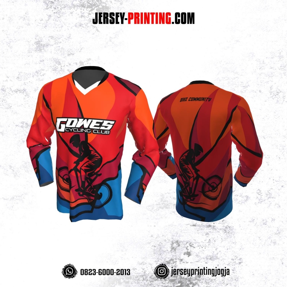 Jersey Gowes Sepeda Orange Merah Biru Hitam Lengan Panjang