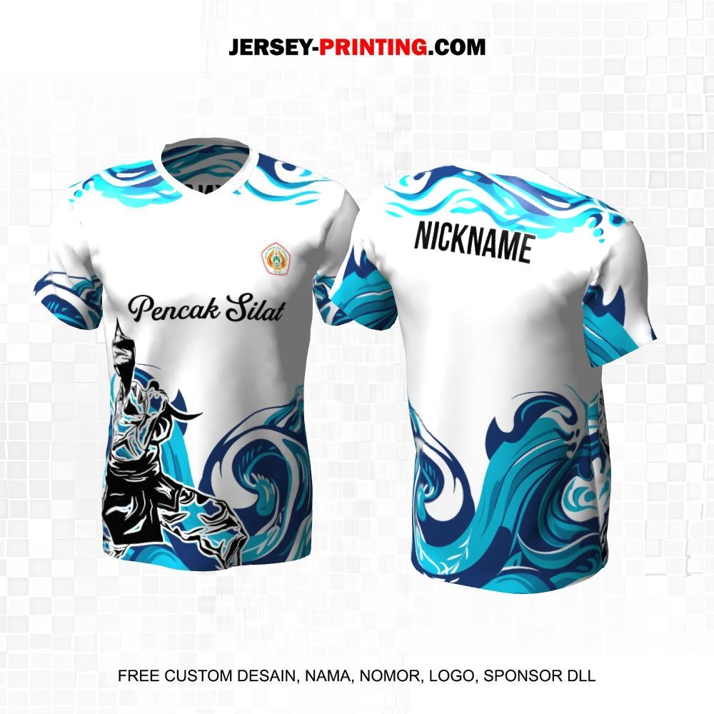 Jersey Pencak Silat Putih Biru Motif Abstrak 392